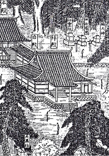 【関連サイト】 『大分縣社寺名勝圖録』(国立国会図書館)村社若宮神社境内圖→ 『おおいた神社探訪』若宮八幡社→ 『物見遊山記:神社探訪』若宮八幡社→ 『大分の石橋〜道中で見たもの』大石若宮八幡宮猿田彦命→