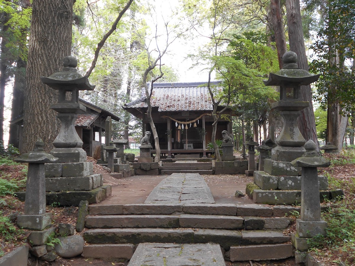 祭神は、誉田別尊・應神天皇・源為朝。社記に後白河天皇仁平九壽年間(1151〜1155)、源為朝、当雄城に城を築き創立すとある。境内には天神社、今宮社、保食社、八坂社、稲荷社を祀っている。また、為朝が霊山に棲む鬼と競い山頂から射た鏑矢が突き刺さったという石が雄城台高校の中にあり「矢跡石」よ呼ばれている。