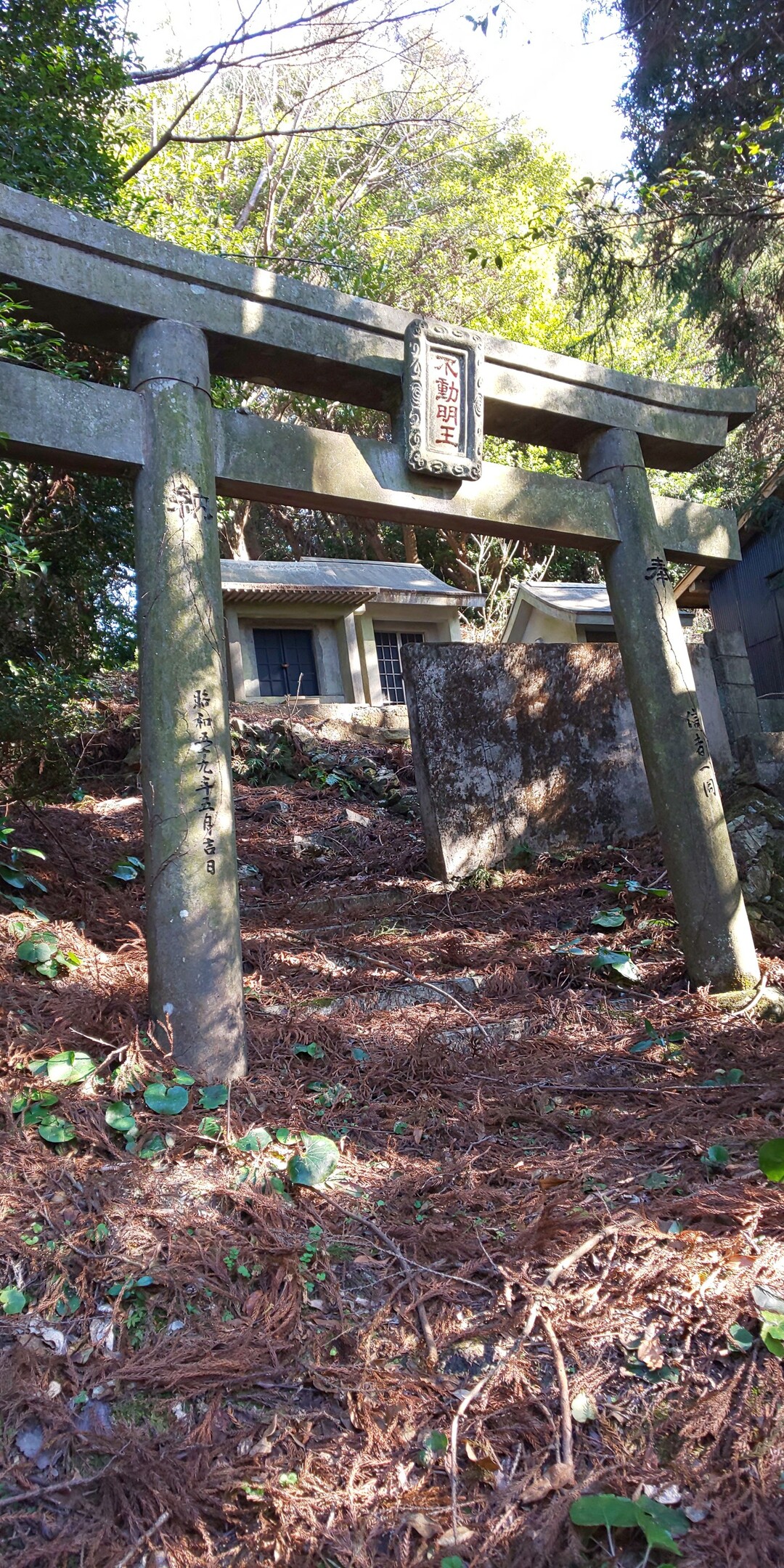 国土地理院の 鳥居があり、扁額に「不動明王」の銘。 「不動明王」なので寺院と思われますが、鳥居があるので掲載に加えました。 (写真は『YAMAP りこさんの活動日記』より) https://cdn.yamap.co.jp/public/image2.yamap.co.jp/production/65ddb5ae6e5c46688e932a27a8ec91d2?h=2160&t=resize&w=1080